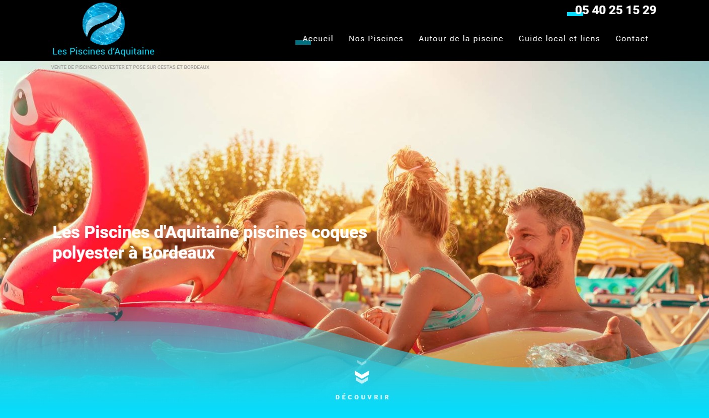 Piscines Aquitaine est le spécialiste de la vente de piscine polyester sur Cestas et Bordeaux. Son commercial digital® lui permet de présenter ses différents modèles classiques : carrés, rectangulaires, haricot... et faire bénéficier à ses clients de nombreuses options d'extérieur : avec jacuzzi pour la détente, couloir de nage pour les petits espaces, avec pool house et terrasse sur mesure pour du haut de gamme. Ravi de la prestation Jalis, notre client s'est doté en 2016 d'un second site dédié à son activité haut de gamme : les piscines de luxe en Gironde. A découvrir !