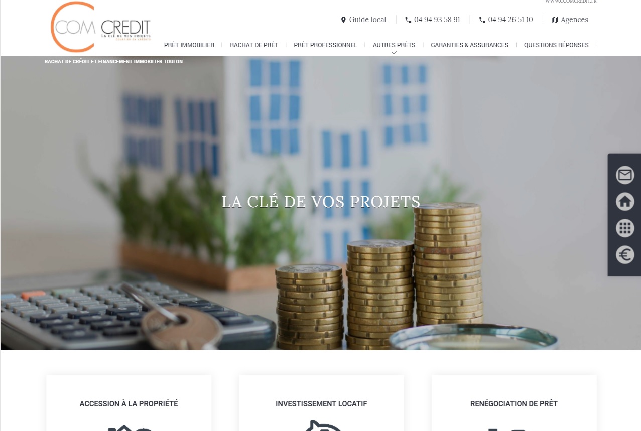 C COM Crédit, courtier en prêts à Toulon et dans le Var, finance les projets des ménages et des entreprises avec des solutions de crédits adaptées à chacun.