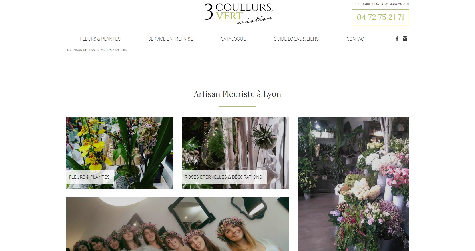 Satisfait par les résultats obtenus avec son site vitrine, Trois Couleurs Vert a opté pour la création d'une boutique en ligne, dédiée à la livraison de bouquet de fleurs à domicile sur Lyon. En quelques clics, l'internaute peut passer sa commande, la régler et choisir entre une livraison ou un retrait en magasin.