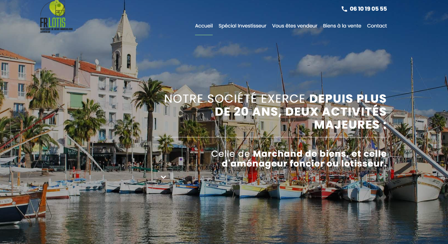 Que ce soit pour vendre votre bien immobilier ou votre propriété à Toulon, acheter un terrain un terrain constructible à Marseille ou encore effectuer un investissement immobilier à Salon de Provence, le marchand de biens FR LOTIS vous accompagne où que vous soyez en région PACA. Forte d'une expérience de terrain, l'équipe de FR LOTIS vous permet aux vendeurs de vendre leurs biens plus rapidement, aux acheteurs de trouver le terrain adéquat et aux investisseurs de réaliser des placements financiers rentables et sécurisés. Contactez-les pour en savoir plus et leur exposer votre projet.