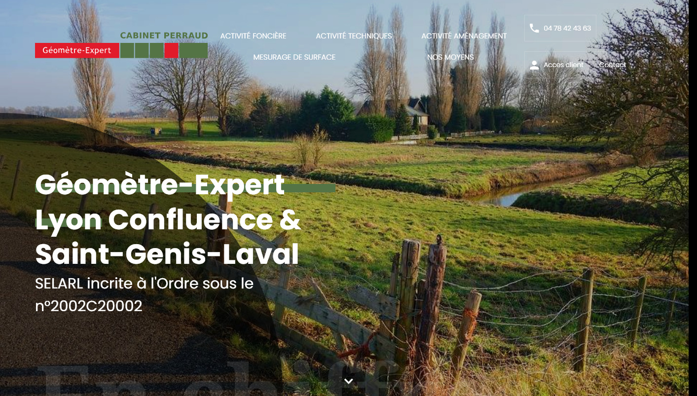 Cabinet de géomètre-expert à Lyon et à Saint-Genis-Laval, Cabinet Perraud est compétent dans les domaines foncier, immobilier, de l'aménagement ou encore de l'urbanisme. Création ou modification de copropriétés, division de propriété, récolement de réseaux, mesurage de surfaces, rédaction de plan d'intérieur ou rédaction de plan topographique à Lyon : découvrez l'ensemble des compétences du cabinet sur son site internet.