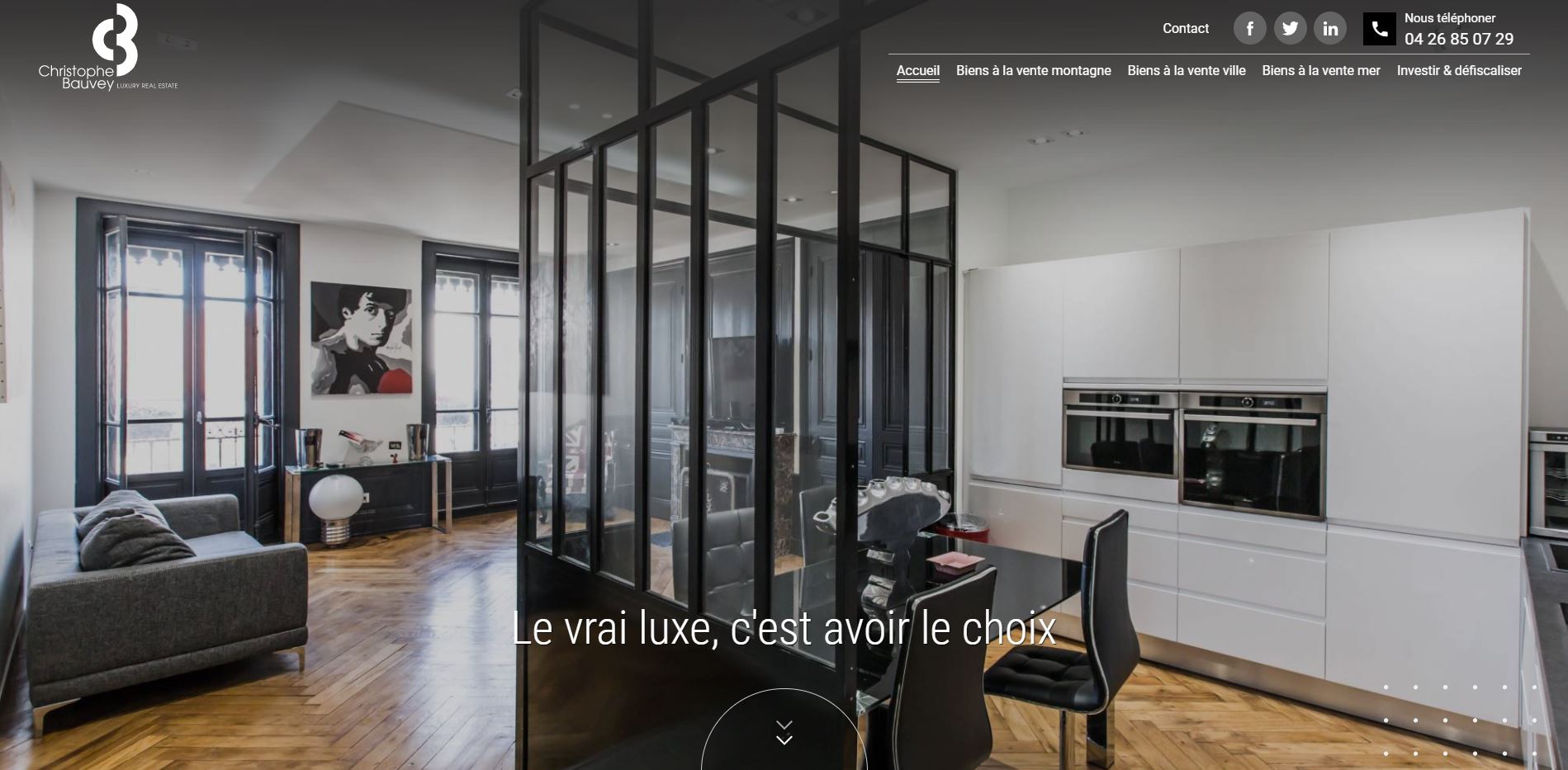 A travers son site de prestige et fonctionnel, Bauvey Immobilier met en avant ses annonces de logements à acheter pour investissement locatif en bord de mer, dans les stations de ski ou encore dans les grandes villes. Agence immobilière à Lyon spécialisée dans l'immobilier de loisir et de tourisme, Christophe Bauvey Immobilier présente en effet ses programmes neufs ou défiscalisés ou des appartements rénovés.