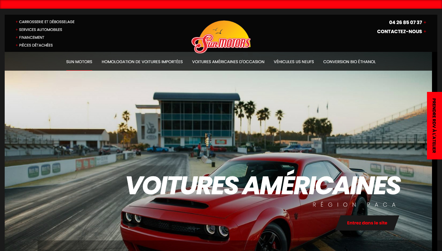 En plus de l'achat de votre véhicule, Sun Motors s'occupe de l'homologation de votre voiture américaine, de sa révision et de bien d'autres services consultables sur le site de la société. Découvrez l'ensemble des véhicules proposés par le garage et contactez un professionnel si vous ne trouvez pas votre voiture préférée : l'importateur peut effectuer des recherches pour vous.