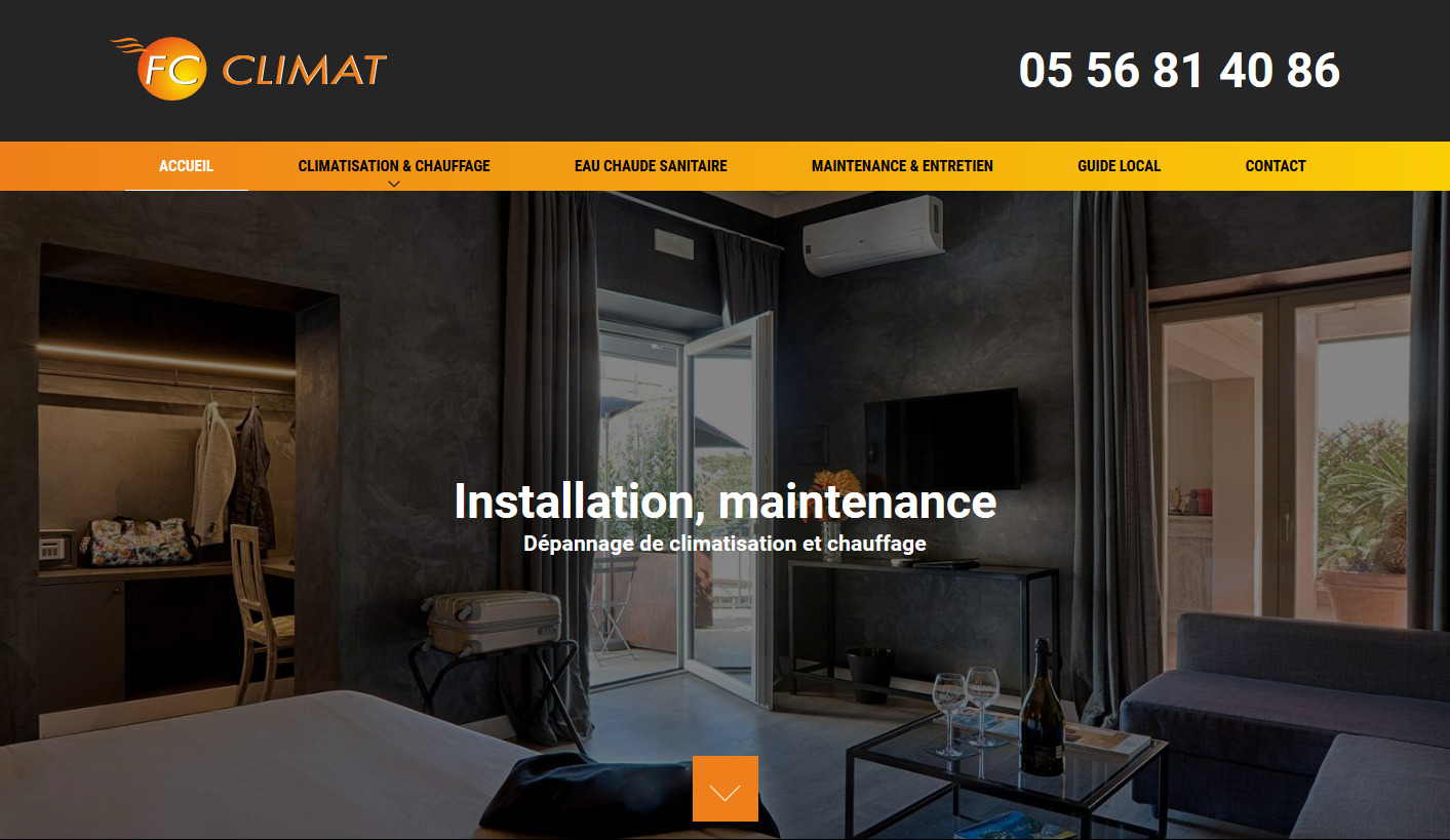 Le produit E-Ssentiel de Jalis propose à FC Climat un site internet design et moderne. Ce dernier permet à l'entreprise d'exposer son activité grâce à un outil de communication indispensable de nos jours ! Grâce au SEO local, l'entreprise devient visible et omniprésente auprès de ses clients potentiels, de sa cible réelle.