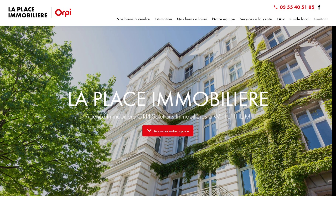 La Place Immobilière Orpi opte pour un site premium de la gamme eFlex avec un accompagnement visibilité par les experts Jalis. Notre client aimerait développer l'activité de marchand de bien. Pour cela, il a besoin de l'aide d'un référenceur afin de comprendre les intentions de recherche des internautes sur son activité. À travers ce nouveau site web, La Place Immobilière souhaite présenter ses annonces de biens à vendre sur Mulhouse ainsi que ses activités annexes. La solution Jalis va permettre à l'agence de capitaliser sur la notoriété digitale propre à leur établissement. Ce qui est impossible avec la simple page de Orpi FRANCE.