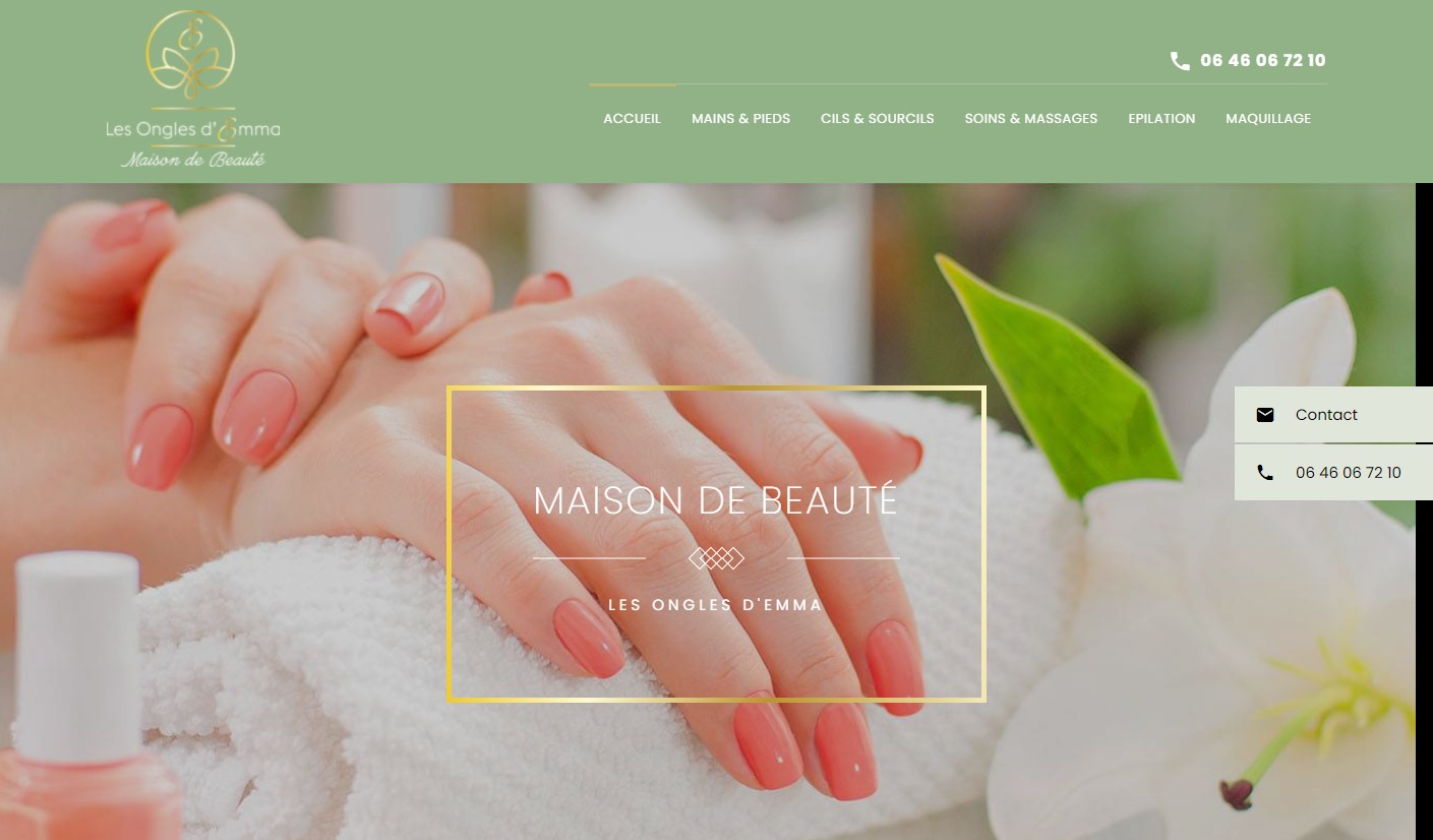 "Les Ongles d'Emma" est un institut de beauté situé à Marseille Château Gombert dans le 13ᵉ arrondissement. Le client ne disposait d'aucun site internet et passait uniquement par les réseaux sociaux pour sa communication digitale. Grâce à Jalis, ce salon de beauté bénéficie désormais d'une image de marque et d'un positionnement plus avancé. Les internautes ont la possibilité de prendre rendez-vous facilement sur le site. Ils peuvent notamment prendre connaissance des tarifs des soins esthétiques avant un éventuel déplacement en institut.