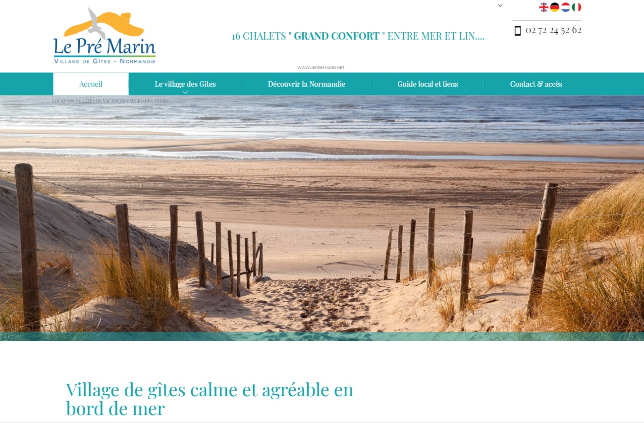 Le Pré Marin, village de vacances à Sotteville sur Mer, a choisi la solution Jalis pour se faire connaître sur internet, particulièrement sur Google. Le référencement géolocalisé que nous proposons lui permet d'attirer les vacanciers faisant une recherche plus large en zone géographique. Son site internet présente ses prestations, les gîtes et leur capacité ainsi que les activités à proximité ou sur place.