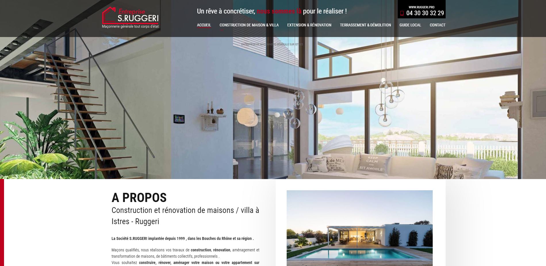 Ce client présente ses réalisations grâce à son site internet et bénéficie d'une visibilité optimale avec notre outil de référencement sur mesure qui permet à l'entreprise RUGGERI de se positionner en tant que leader sur Google avec des requêtes qui concerne son activité. Si vous aussi vous souhaitez positionner votre site en numéro 1 sur les moteurs de recherches, contactez Jalis !