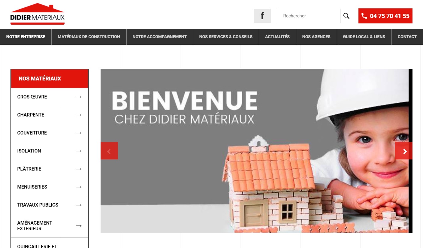 L'enseigne Didier Matériaux est une institution dans le secteur de la construction depuis plus d'un siècle. Spécialisée dans le négoce de matériaux pour la construction sur Valence, l'entreprise mise sur la qualité de ses produits en ne proposant que des produits d'origine française. Pour en savoir plus sur les matériaux proposés par Didier Matériaux, consultez leur nouveau site web ou rendez-vous dans l'une de ses 5 agences dans la Drôme.