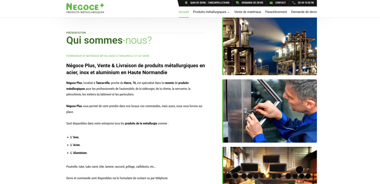 Négoce + est une entreprise située à Tancarville en Seine-Maritime et qui s'adresse aussi bien aux professionnels (serrurier, plombier, secteur automobile, etc.) qu'aux bricoleurs du dimanche qui sont à la recherche de produits métallurgiques à la vente vers Le Havre.