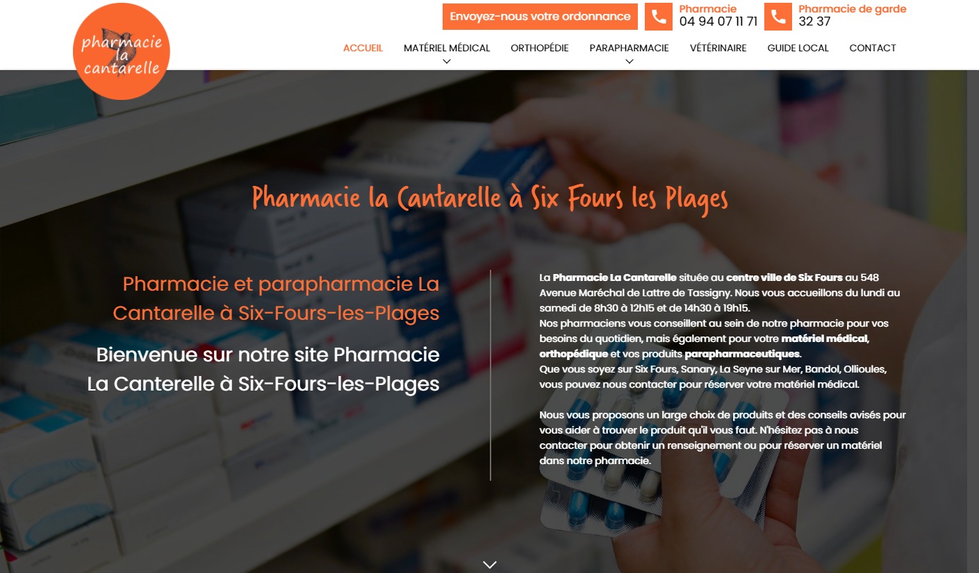 La Pharmacie La Cantarelle fait appel à l'agence Jalis afin de créer son site internet. Cette vitrine numérique permet à la pharmacie d'obtenir plus de visibilité sur la vente, la location et la livraison de matériel médical. Tel un catalogue, les sections : lit, fauteuil et rollator permettent de présenter les nouveaux produits disponibles à la commande en pharmacie.