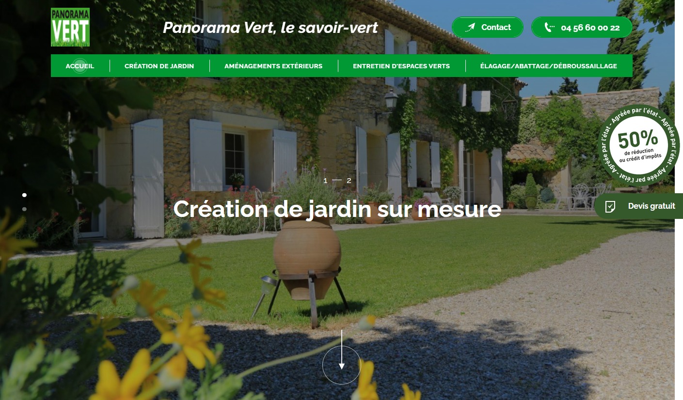 Panorama Vert fait appel à Jalis pour développer son activité liée à la création de jardin dans les Bouches-du-Rhône. Les paysagistes sont très recherchés sur la région, notamment pour l'aménagement de jardin méditerranéen ou provençal. Avec une équipe de 15 professionnels des espaces verts, l'entreprise propose de multiples services aux particuliers et résidences. Système d'arrosage, création d'allées, enrochement, ou encore terrain de pétanque : tout est possible avec Panorama Vert.