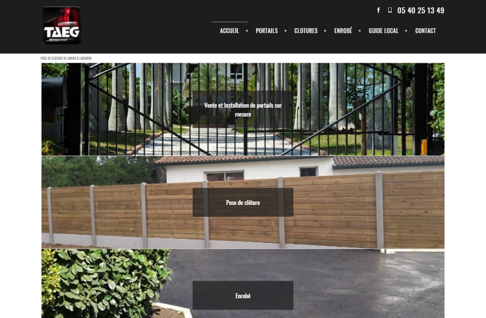 L'agence Jalis a mis en avant les prestations en portails, clôtures et enrobés de TAEG avec un site web sur mesure. Il distingue les différentes prestations afin d'orienter précisément les internautes. Référencé, le site se positionne sur Google auprès des internautes locaux qui ont un réel besoin.