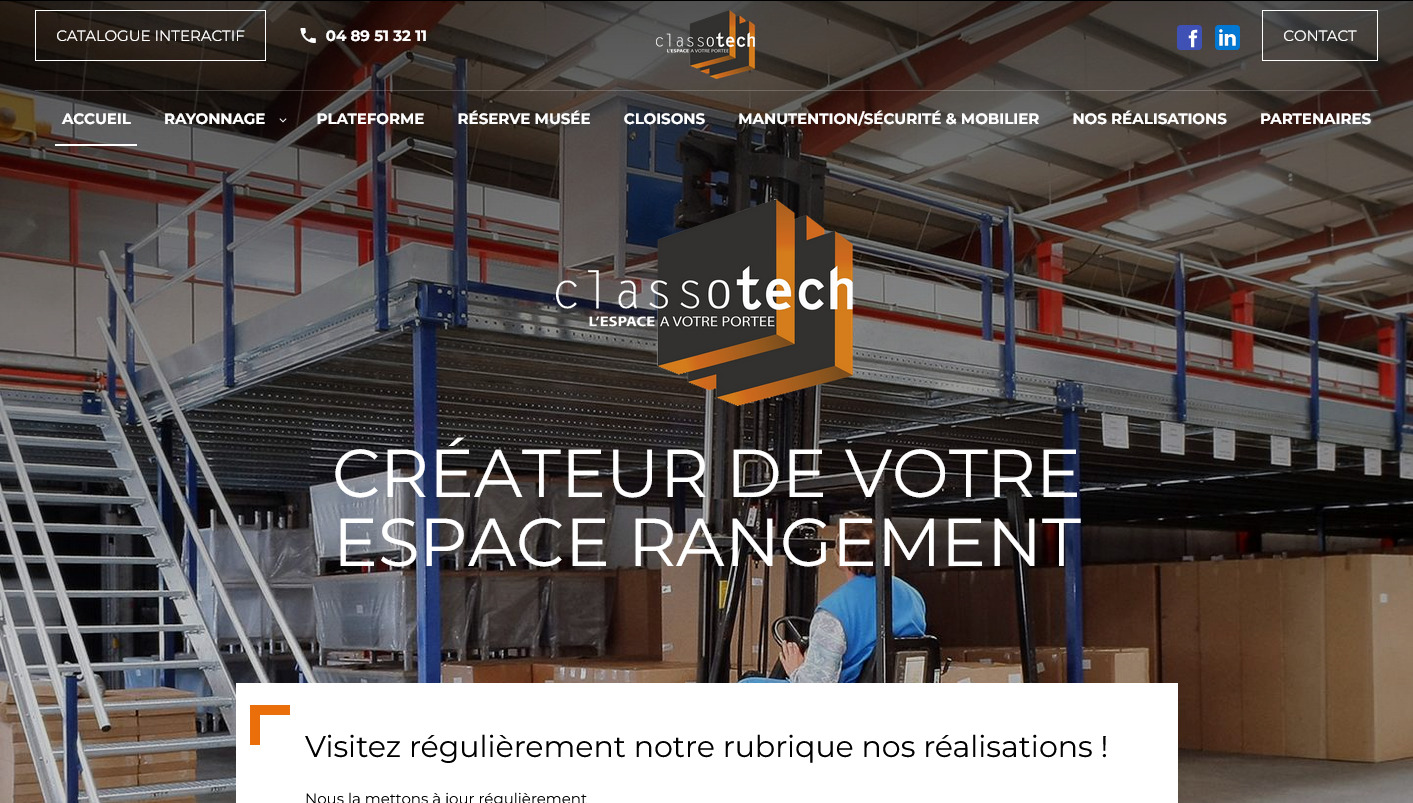 Classotech a confié sa communication digitale à notre agence web. Experte en systèmes de stockage et en rayonnage d'archives à Avignon, Classotech se déplace dans tout le Sud de la France. Des solutions de rayonnage et d'archivage adaptées à différents secteurs d'activité sont proposées par cette société : pour le secteur tertiaire, les industries, les commerces alimentaires et grandes surfaces, les collectivités, etc. Vous avez aussi la possibilité de trouver des cloisons amovibles pour l'agencement de vos bureaux et espaces de coworking.