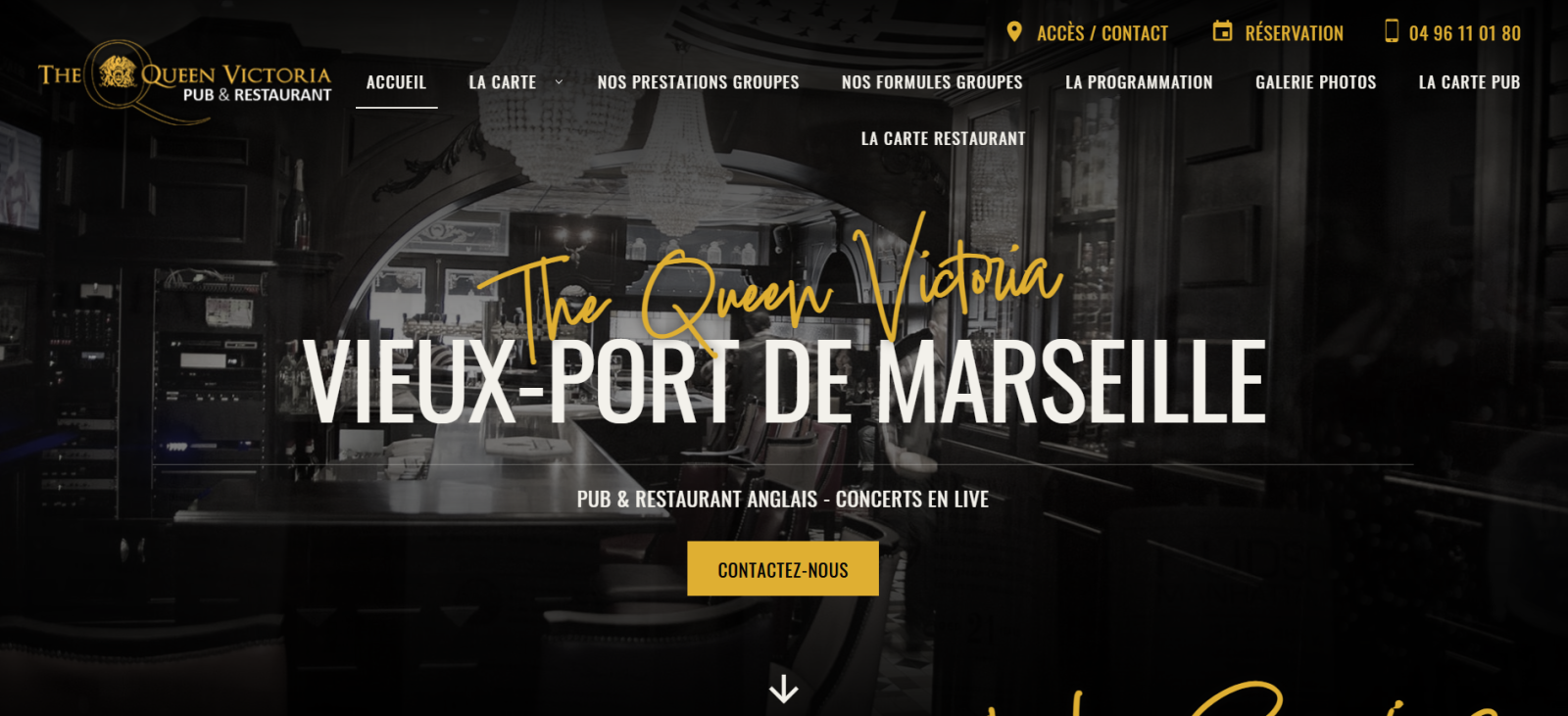 Le Queen Victoria, anciennement la Taverne de Maître Kanter sur le Vieux Port à Marseille, a fait appel à Jalis pour la création d'un site internet aux couleurs de l'établissement, c'est-à-dire un site au webdesign so british tout en élégance. Récemment, le client a choisi de développer un deuxième site dédié à son activité de groupe. Le Queen Victoria est un bar restaurant à Marseille Vieux Port, façon pub anglais. L'établissement est en effet décoré dans un style victorien et accueille ses clients dans une ambiance très festive et conviviale, parfois même avec des groupes de musique. On peut y manger ou juste y boire un verre entre amis. L'établissement a quelques spécialités comme le camembert rôti ou encore les burgers mais sert globalement de la cuisine traditionnelle. Disposant d'une grande capacité, le pub restaurant de groupe peut accueillir des groupes pour les anniversaires, séminaires d'entreprise, retransmission de match ou encore recevoir des groupes de voyageurs.