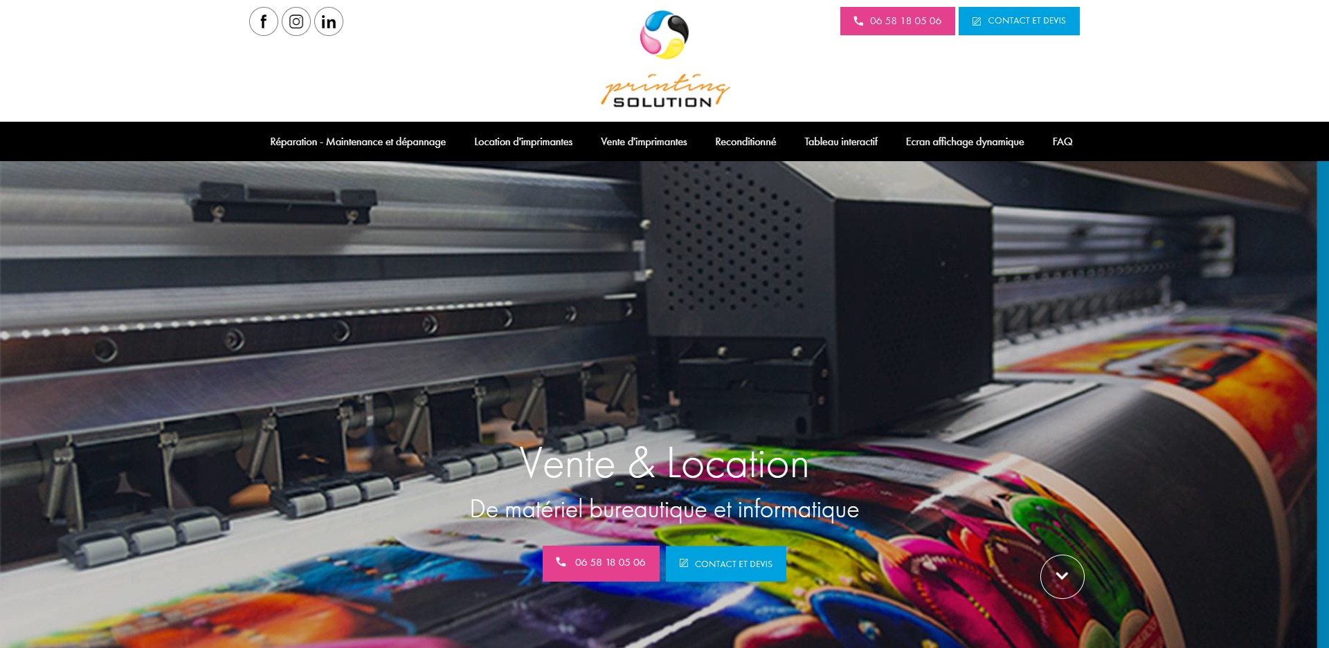 MJ PRINTING SOLUTION a fait appel à l'agence Jalis pour créer un site internet spécialisé dans la location, la vente et la réparation de matériel informatique à Cannes 06. Grâce à leurs solutions brevetées, Jalis Express et Refzen, MJ PRINTING SOLUTION pourra améliorer son référencement naturel sur Google afin d'atteindre toujours plus de clients. L'équipe de Jalis proposera un design original qui correspond à l'image et à la vision de l'entreprise et qui sera optimisé pour le web. De plus, le site est responsive et s'adapte aux différents supports, ce qui facilite l'accès à la clientèle de MJ PRINTING SOLUTION.