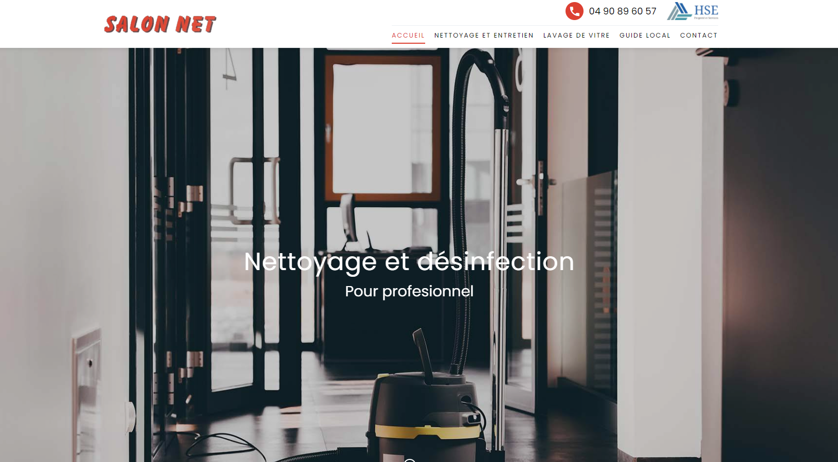 Salon Net est une entreprise de service de nettoyage pour les professionnels à Salon-de-Provence. Jalis a réalisé un site pour présenter ses domaines d'intervention : nettoyage de bureaux, nettoyage de locaux, nettoyage de copropriété, nettoyage de collectivités et grandes surfaces.