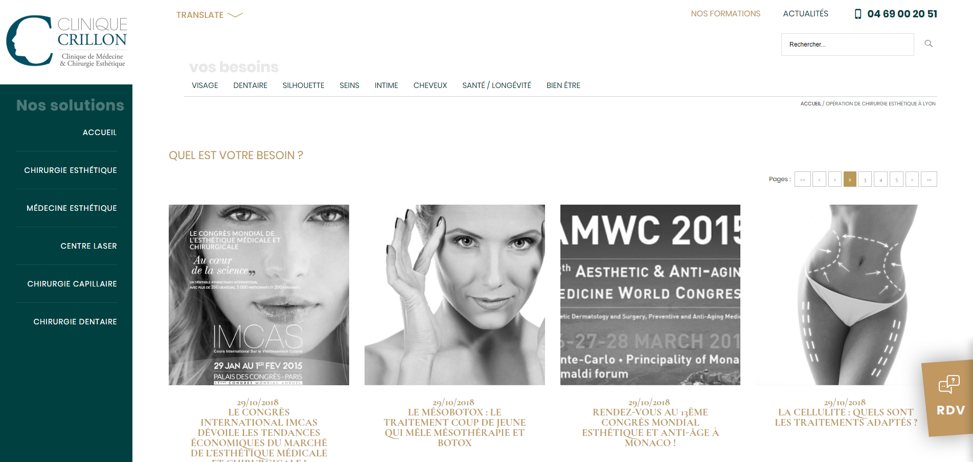 La Clinique Crillon, basée sur Lyon, a fait appel à Jalis pour l'ensemble de ses sites internet, notamment son site d'actualités. Un site d'actualités ? A propos de la chirurgie et de la médecine esthétique, son domaine d'exertise !