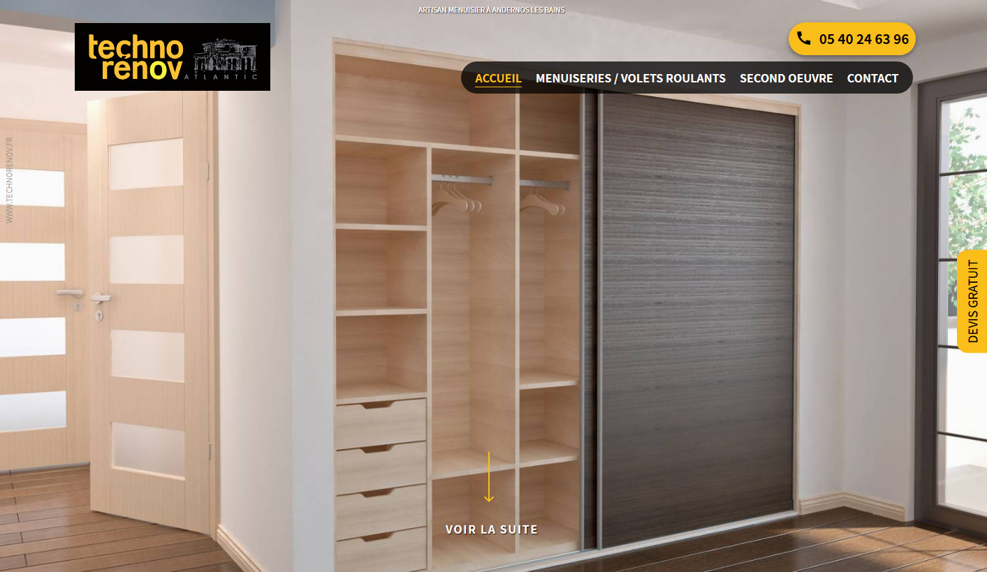 Le commercial digital de cette entreprise présente l'ensemble de ses réalisations et de ses prestations. Spécialiste de la menuiserie et de l'aménagement d'intérieur, Techno Renov Atlantic interviendra pour la pose de menuiseries aluminium ou PVC, le dépannage de motorisation et d'automatisme ou encore pour réaliser des travaux de rénovation ou d'agencement. Fenêtres, volets, portes d'entrée ou encore portails : faites le choix de menuiseries de qualité en vous adressant à un artisan qui sera de bon conseil.