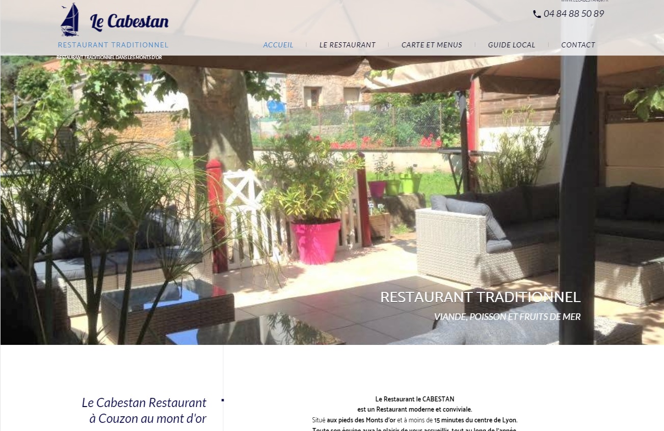 Le restaurant Le Cabestan situé dans les Monts d'Or a opté pour une solution e-Ssentiel qui lui permet de communiquer efficacement sur sa carte et les prestations de l'établissement. Restaurant traditionnel vers Caluire, il propose à ses clients des plats cuisinés maison avec des produits frais et locaux. Spécialisé dans les fruits de mer, il sert aussi d'excellentes viandes parfaitement préparés.