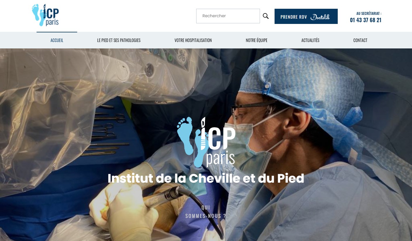 L'Institut de la Cheville et du Pied est basé à Paris 15ème. Le centre est spécialisé dans la prise en charge de l'ensemble des pathologies du pied et de la cheville. Les chirurgiens orthopédiques pratiquent les chirurgies du pied et de la cheville dans son ensemble : avant pied, medio pied, arrière pied. Le nouveau site web facilite la prise de rendez-vous ainsi que la consultation des informations liées à une hospitalisation.