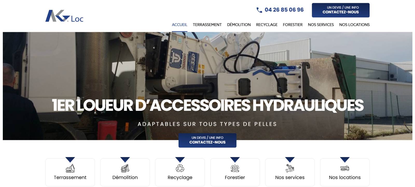 AG LOC est une société située à Fourques proposant du matériel professionnel à la location pour de grandes sociétés de travaux public. Le matériel est bien spécifique aux secteurs TP et BTP. Le site est découpé selon les types d'utilisation des accessoires hydrauliques comme la démolition. AG Loc propose une prestation de livraison sur la France entière. L'ensemble des réalisations et des accessoires BTP disponibles à la location sont présents sur le site.