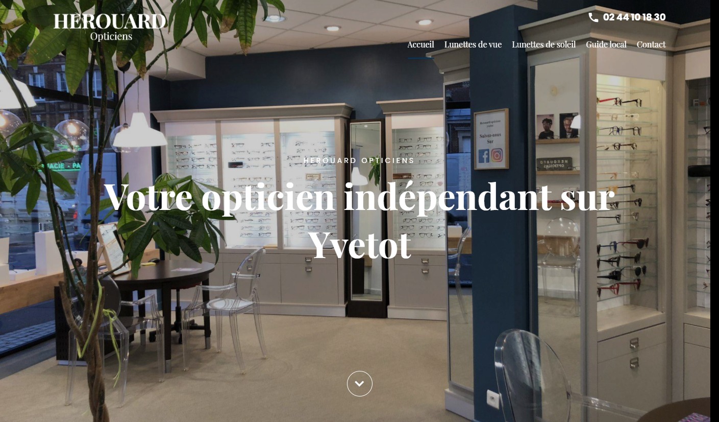 Herouard Opticiens est basé dans le centre-ville de Yvetot en Seine-Maritime. Avec une large gamme de lunettes de créateurs, le magasin d'optique souhaite un site internet pour mettre en avant ses nouvelles collections. Lunettes de vue, lunettes de soleil, lunettes de sport : la boutique indépendante à Yvetot accueille les clients dans une ambiance conviviale. Le site web permet de présenter les gammes et modèles de lunettes pour hommes / femmes / enfants, et d'attirer de nouveaux clients en boutique.