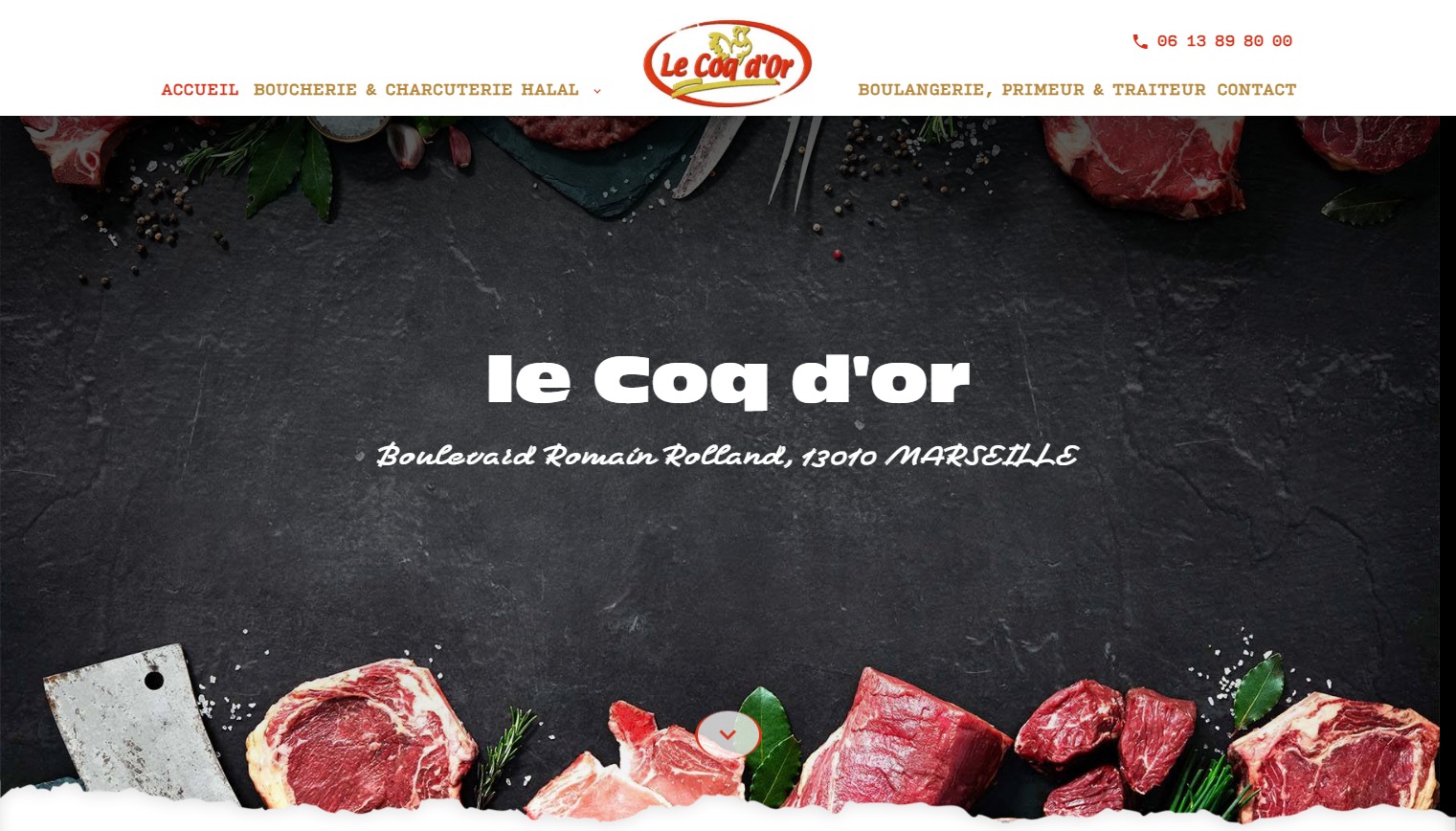 Jalis réalise le premier site internet de la boucherie halal Le Coq d'or à Marseille 13010. Le client a plusieurs activités au sien de l'établissement : Boucherie, charcuterie, primeur, rôtisserie, boulangerie. Le site internet est principalement dédié aux demandes traiteur pour les événements : mariage, fête de l'Aïd, anniversaire, etc.