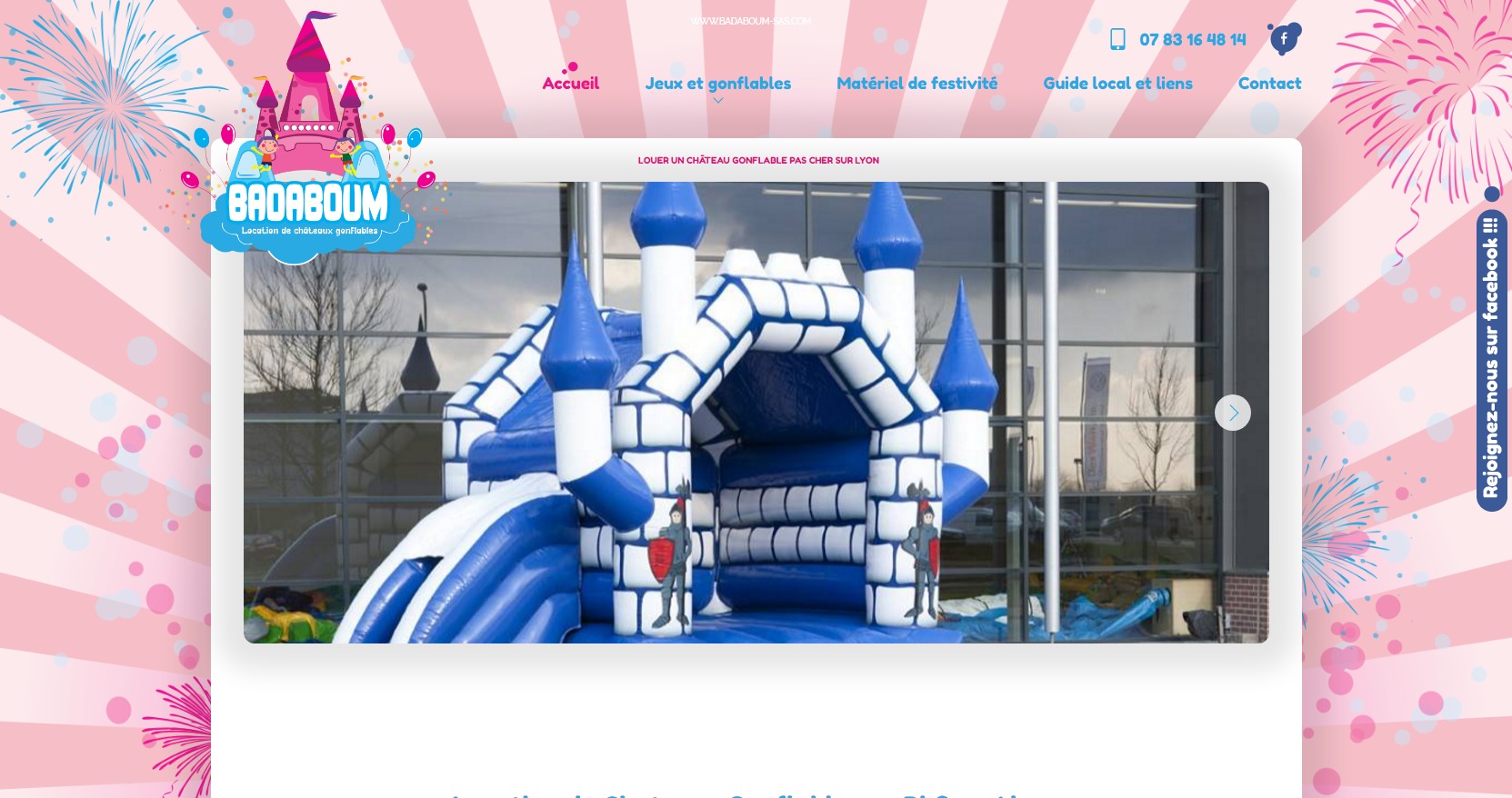 Badaboum a fait confiance à Jalis pour développer la vitrine en ligne de son activité. Pour mettre en avant ses produits festifs disponibles à la location, notre agence web a travaillé sur un design coloré et enfantin, puis a référencé ce site de la gamme E-ssentiel sur Google afin de faire connaître cette société au plus grand nombre.