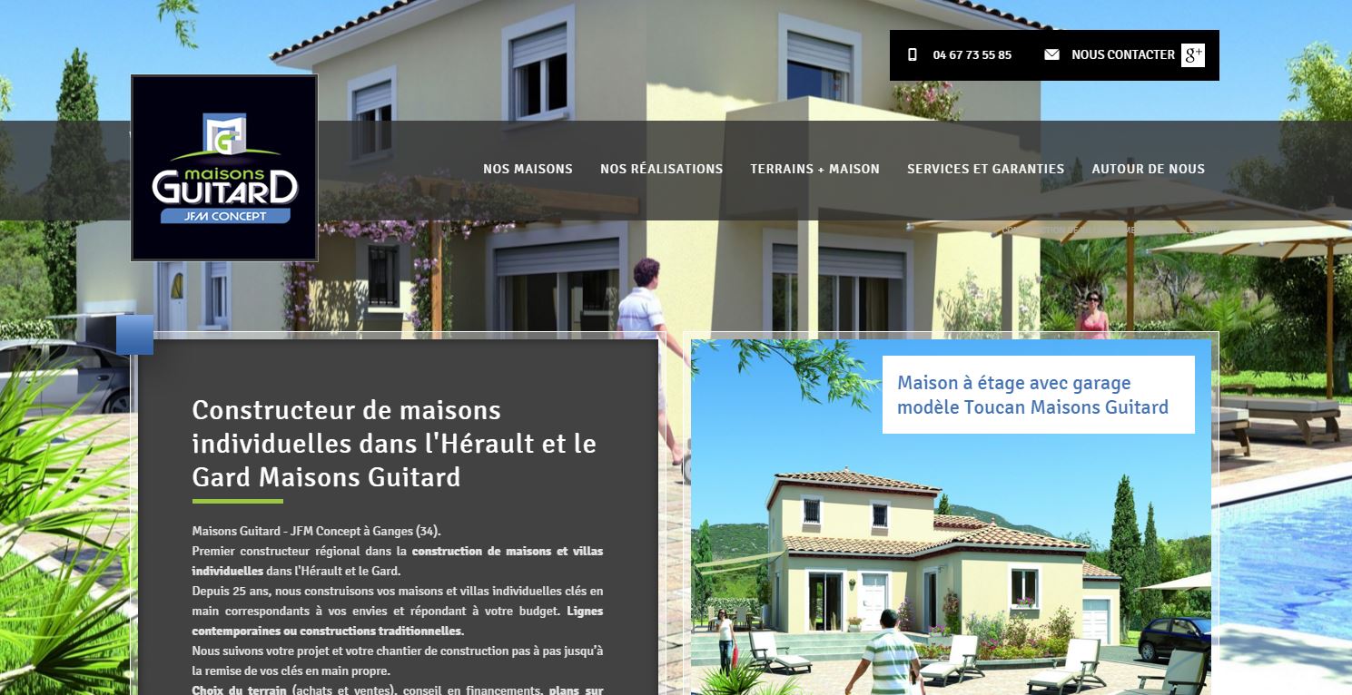 Nos équipes sur Montpellier ont été sollicitées par les Maisons Guitard, constructeurs de maisons au Vigan depuis 25 ans pour réaliser le site web qui leur permettra de se positionner sur Google et de capter toute l'audience possible. Nos graphistes ont mis l'accent sur le visuel pour donner le plus d'importance possible aux différentes réalisations de maison de l'entreprise. Maisons de plain pied, à étage, avec piscine ou jardin paysager, les Maisons Guitard s'adaptent aux besoins de ses clients, tout comme Jalis s'est adaptée aux attentes de son client.
