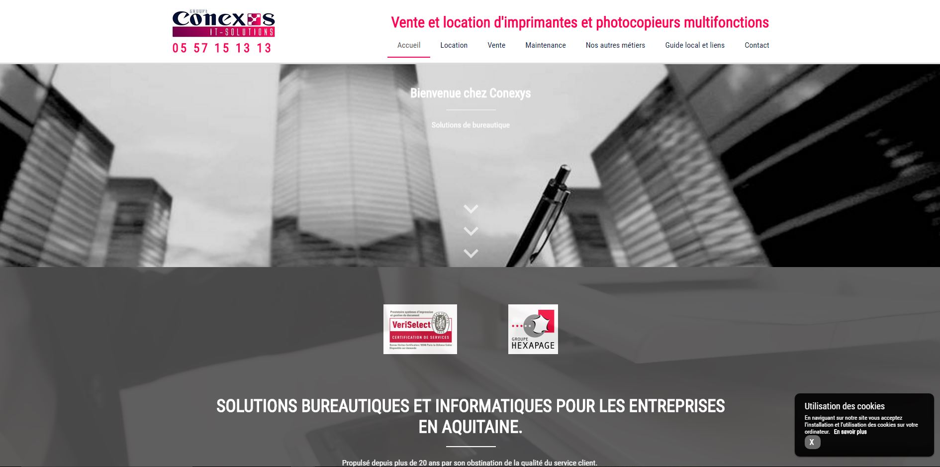 Conexys est une entreprise B to B qui propose des solutions d'impression sur-mesure aux entreprises en Gironde. Elle réalise notamment l'installation d'imprimantes multifonctions, le changement de systèmes téléphoniques et assure la maintenance des serveurs afin de protéger les données de l'entreprise. Pour en savoir plus sur ses domaines d'intervention, rendez-vous sur le site internet du groupe.