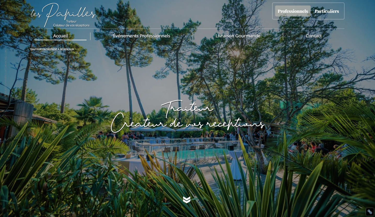 Le traiteur Au Plaisir des Papilles a fait appel à notre studio graphique et notre pôle référencement pour s'offrir une présence sur le web. Dans le domaine événementiel, il est primordial d'être bien visible sur les moteurs de recherche et surtout de pouvoir mettre en avant ses réalisations. En effet, pour un traiteur par exemple, il ne suffit pas que les plats soient bons, la présentation est aussi un facteur important pour se démarquer et surtout proposer de la qualité. Il va donc de soi qu'un beau site lui permettra de présenter ses événements avec soin.
