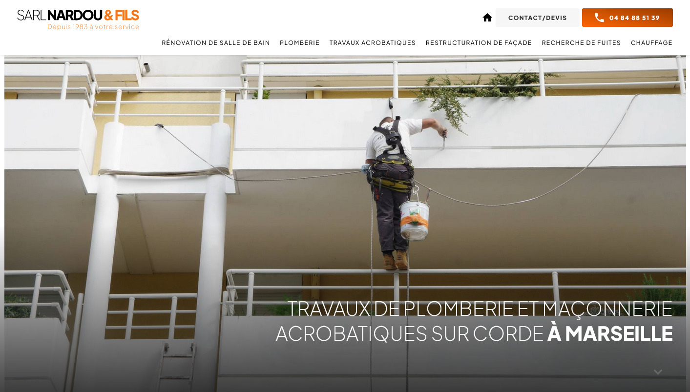 NARDOU & Fils est une entreprise de travaux acrobatiques sur corde basée à Marseille. Que ce soit pour des travaux de plomberie ou de maçonnerie, cette société intervient sur des façades d'immeuble grande hauteur, des édifices ou des monuments avec la réparation de colonne d'évacuation d''eau pluviale à Marseille, ou le nettoyage de conduits de fumée.