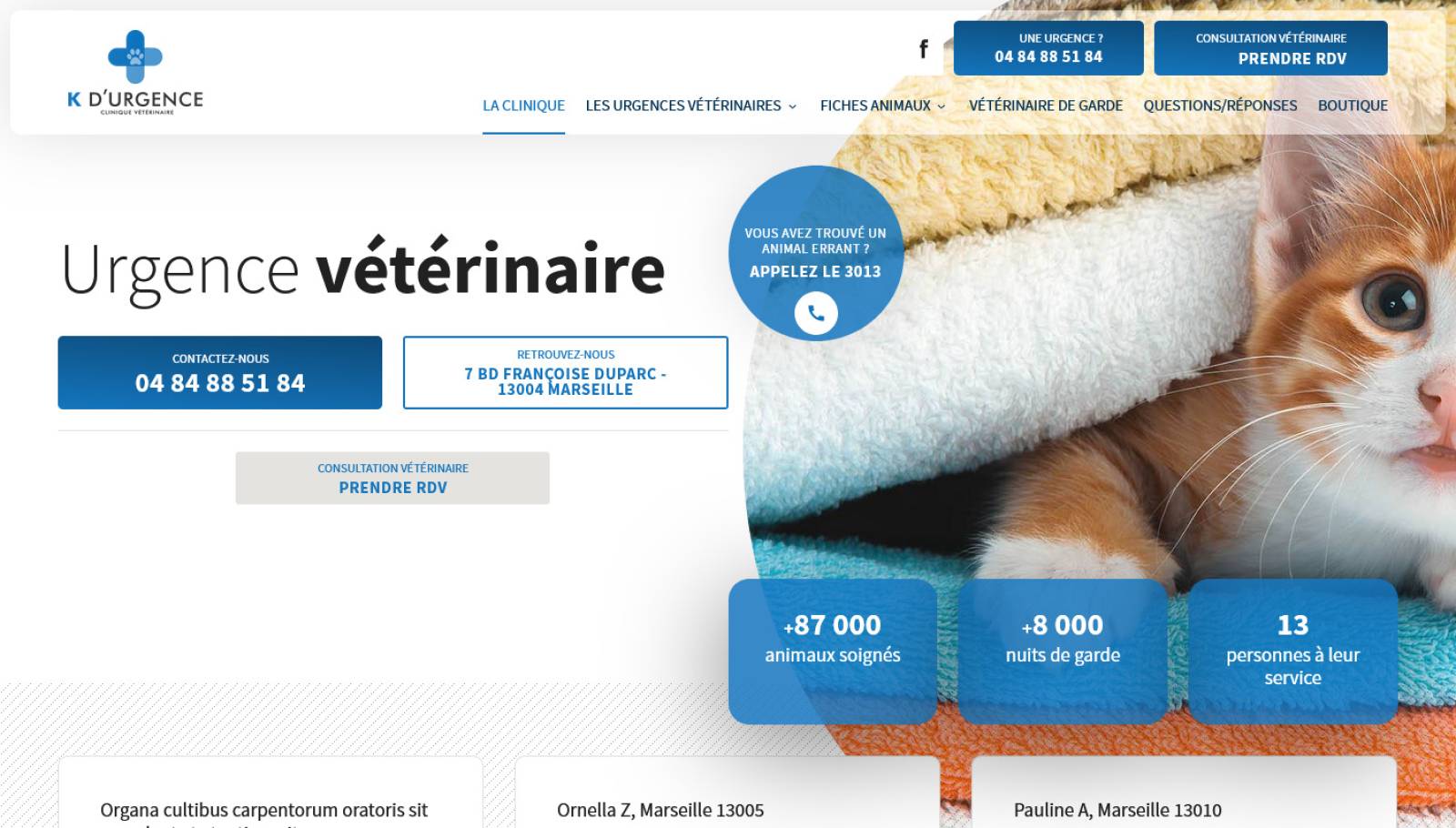 Découvrez l'ensemble des services proposés par K d'Urgence, clinique vétérinaire pour urgence à Marseille qui a choisi Jalis pour réaliser son site internet. La clinique accueille les animaux et leurs propriétaires 24 heures sur 24 en semaine, les weekends et jours fériés.