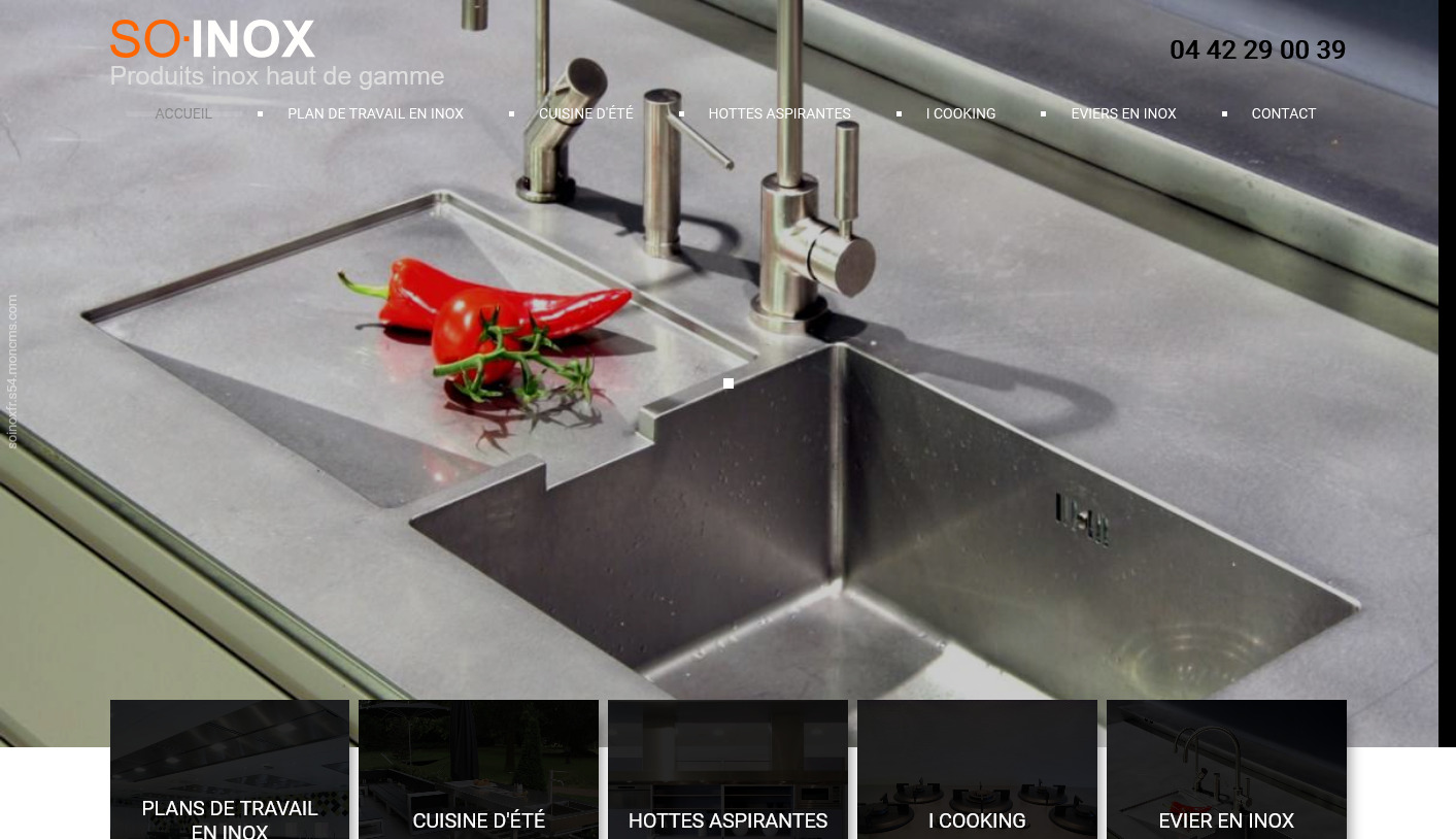 Avec ses plans de travail en inox haut de gamme sur Aix en Provence, la société SO Inox s'inscrit comme un des leaders de la cuisine haut de gamme dans la région. L'inox est repensé et travaillé par des artistes pour devenir un véritable objet d'art. Pour mettre en avant ses réalisations, la société So Inox nous a contacté afin de réaliser un site web à la mesure de la qualité de ses cuisines. Elle propose ainsi plans de travail, éviers, hottes, plaques de cuisson, etc.