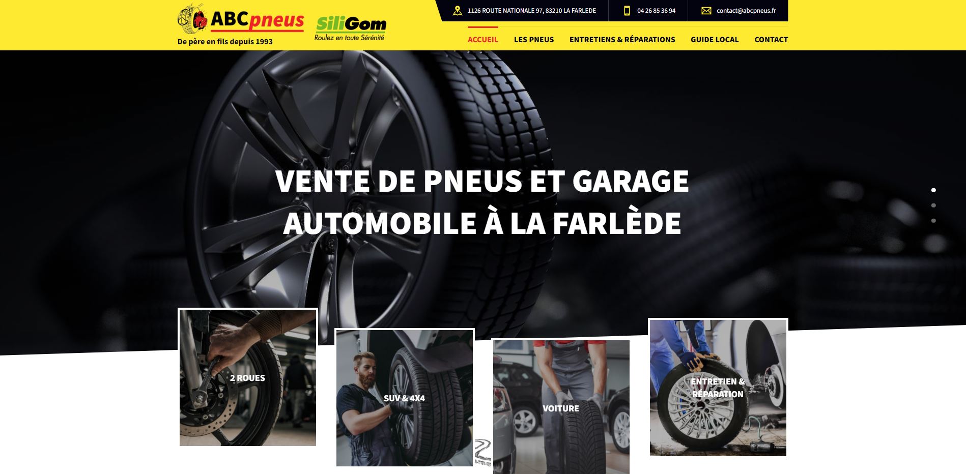 ABC Pneus est un garage automobile situé à La Farlède. Depuis 1993, il propose ses services pour la réparation et l'entretien de véhicules, avec notamment la préparation au contrôle technique, la vidange, l'entretien de système de freinage ou encore le diagnostic électronique.