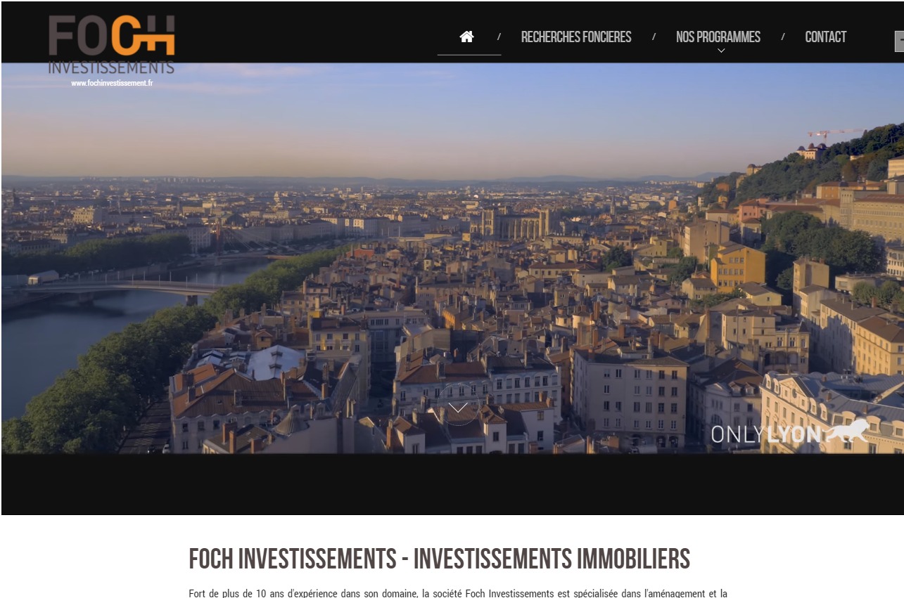 Notre agence a réalisé un site haut de gamme pour Foch Investissements, spécialiste de la vente de programmes neufs de prestige sur Lyon et les villes aux environs (Caluire-et-Cuire, Bron, Saint-Cyr-au-Mont-d'Or...). Foch Investissements restaure des maisons de maître, châteaux et autres propriétés d'exception pour en faire des appartements modernes. Trouvez un logement de standing sur la région lyonnaise en vous rendant sur le site internet de Foch Investissements.