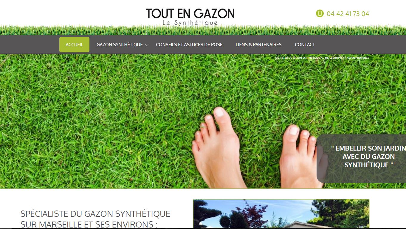 Pour trouver le plus grand choix de gazon synthétique à vendre vers Aix en Provence, rendez-vous sur le nouveau site de l'entreprise Tout en Gazon. Réalisé par Jalis, le site toutengazon.fr met en avant les produits de qualité de ce spécialiste de la vente de gazon artificiel pour les particulier et les professionnels qui souhaitent aménager des espaces avec du faux gazon de qualité. Consultez le site de l'entreprise pour découvrir les nombreux modèles et trouver celui qui donnera une touche de nature à votre balcon, terrasse ou jardin.