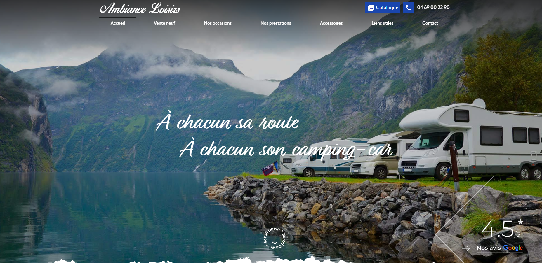 Ambiance Loisirs nous a choisi pour notre maîtrise des outils web. Ce concessionnaire est disponible pour la location de camping car dans le Var. Vous pourrez également acheter votre véhicule en état neuf ou en occasion. Ce type de bolide est idéal pour partir en vacances et sur les routes sans se soucier des détails et du couchage. Les experts Ambiance Loisirs sont à votre disposition pour trouver le bon camping car et les accessoires qui vous permettront de partir sans soucis.
