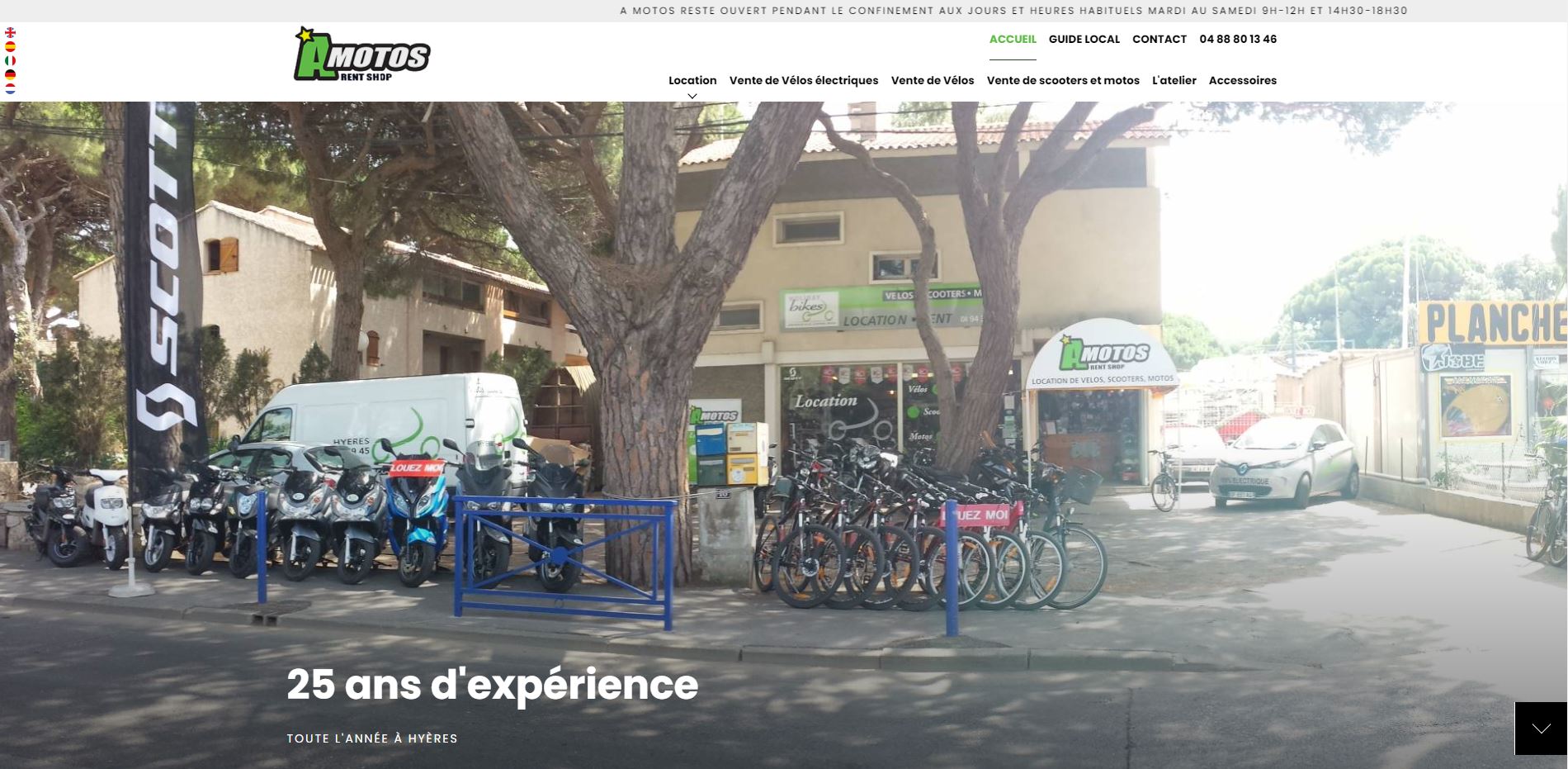 Le magasin Amotos est spécialisé dans la location de deux-roues sur Hyères. Il propose des forfaits à la journée ou à la semaine selon vos besoins. Découvrez leur gamme de vélos, scooters, motos et quads disponibles à la location.