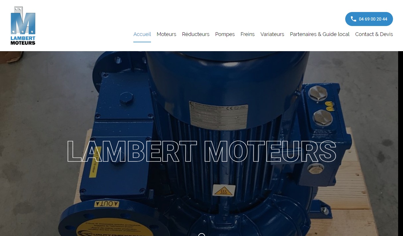Lambert Moteurs est un expert qui nous a accordé sa confiance pour la mise en place de son site. Cette entreprise vous propose la vente de moteur électrique sur Lyon ainsi que dans le reste de la France. Vous pourrez également bénéficier de l'ensemble des pièces annexes à ce type de technologie : pompes, variateurs... ainsi que des matériaux pour tous types de systèmes : courant alternatif, continu, Atex...