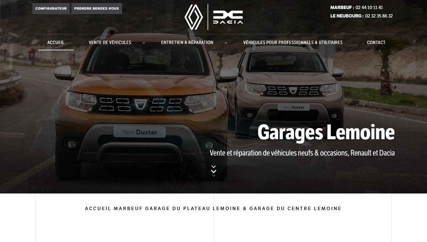 Profitez de services rapides au meilleur prix et du savoir-faire d'une équipe d'experts qualifiés et compétents ! Pour prendre rendez-vous, obtenir un devis de votre besoin ou projet, leurs tarifs ou tout simplement plus d'informations, n'hésitez pas à les contacter par téléphone ou en ligne via leur site internet. Les Garages Lemoine sont situés à Marbeuf et Le Neubourg dans l'Eure (27).